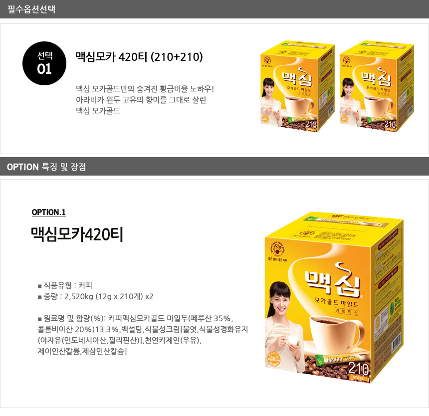 [맥심] 모카골드 420티(210티+210티)