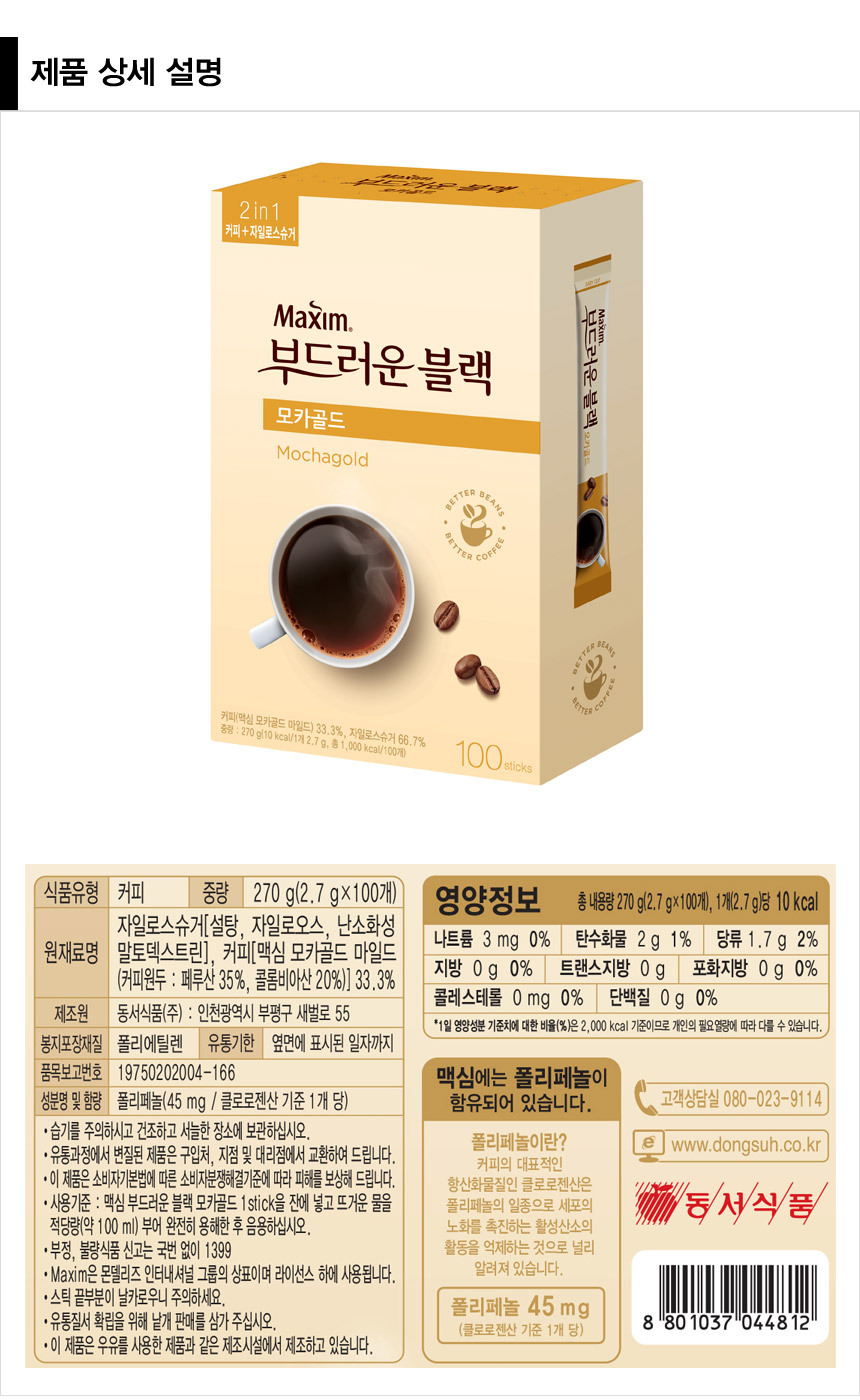 [맥심] 부드러운 블랙 모카골드 100T+100T 총200T