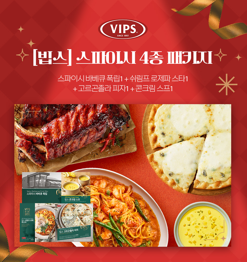 [빕스] 스파이시 4종 패키지 (스파이시폭립1+쉬림프로제파스타1+고르곤졸라피자1+콘크림스프1)