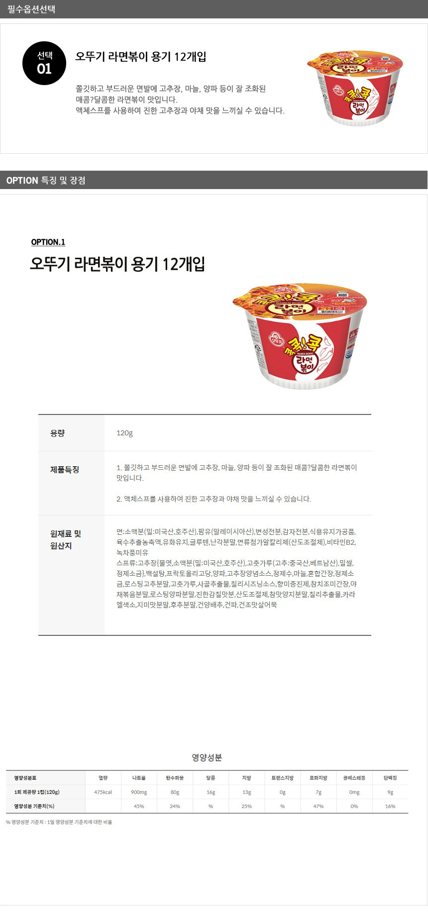[오뚜기] 라면볶이 용기 12개입/컵라면