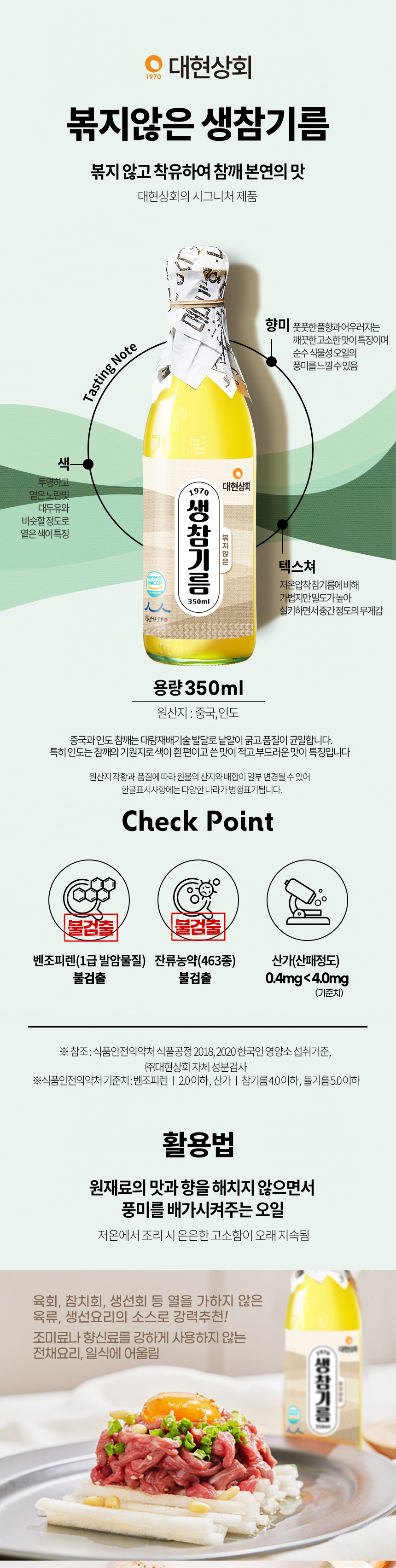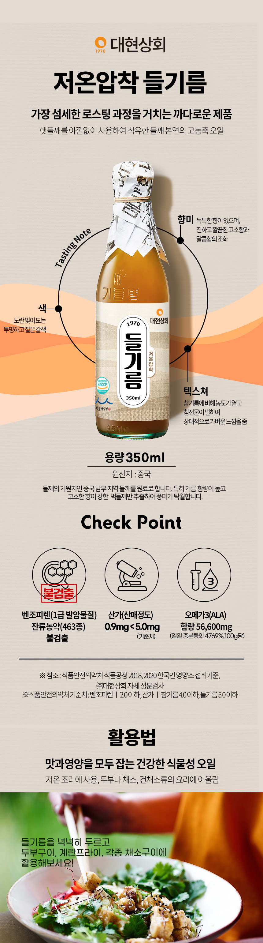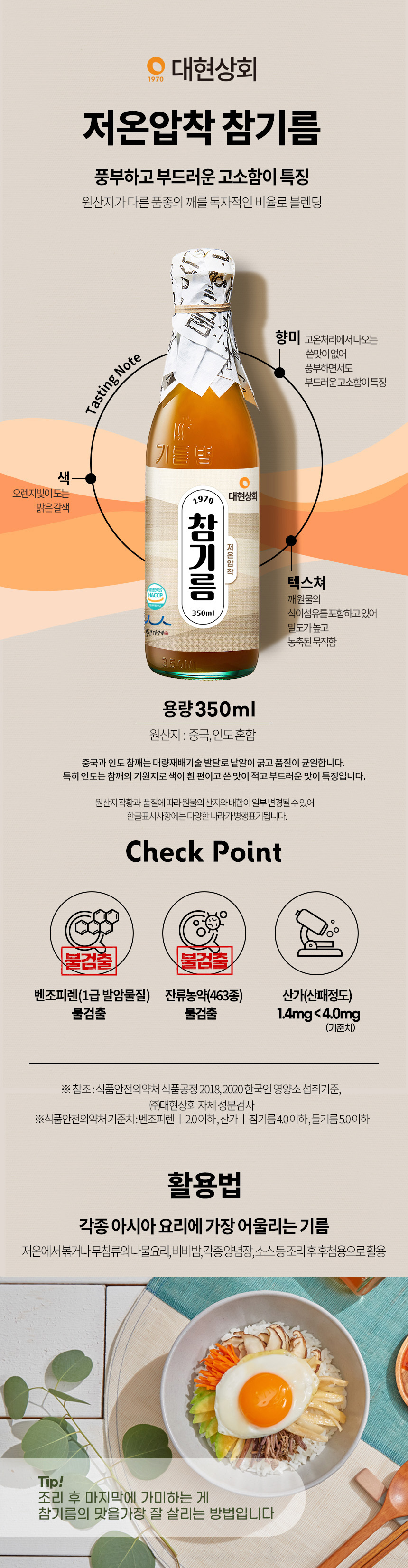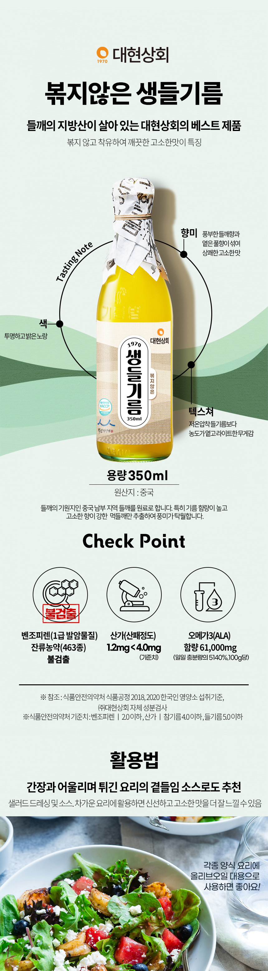 55년전통 대현상회 저온압착 참기름 들기름 생들기름 350ml 모음 / HACCP 인증 백년가게