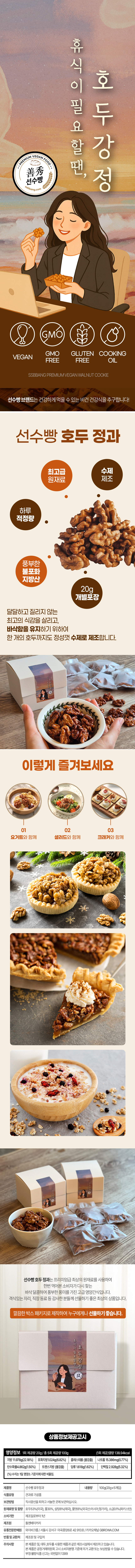선수빵 오븐에 구운 건강 비건 호두 정과 20g X 5봉