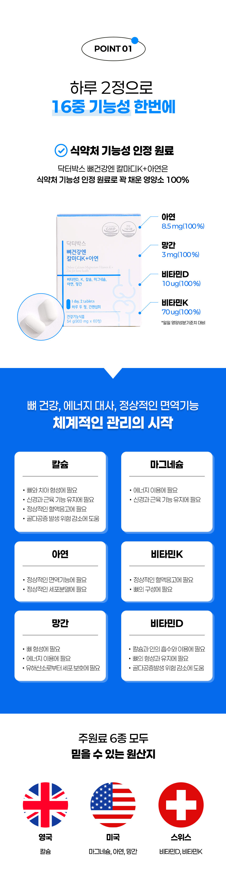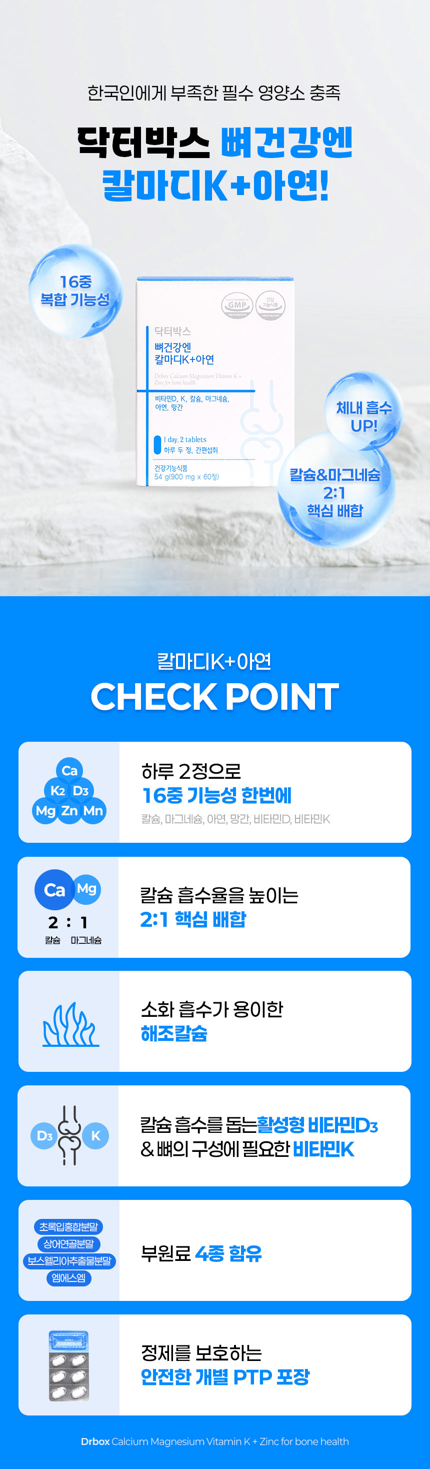 [닥터박스] 뼈건강엔 칼마디K+아연 60정 60정