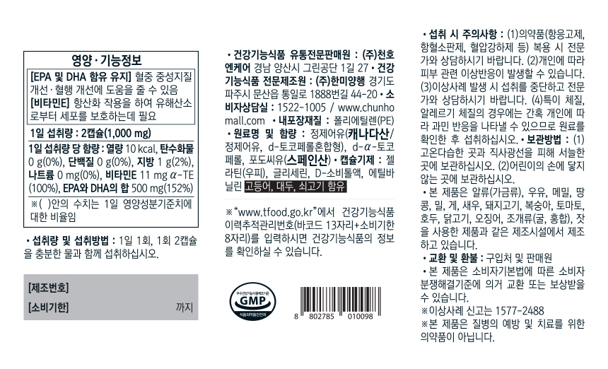 [천호엔케어] 오메가3 500mg * 180캡슐