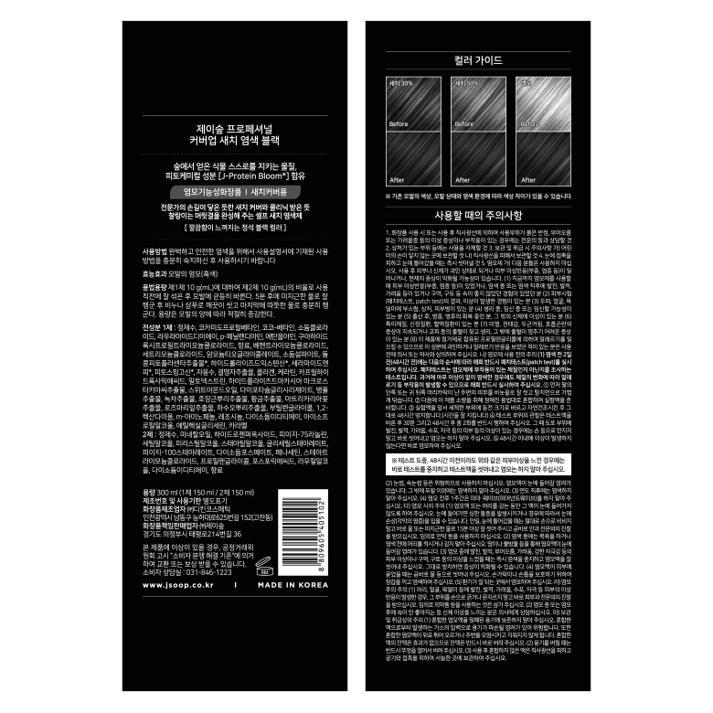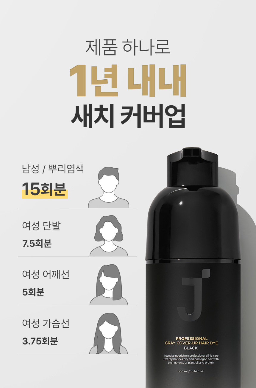 [제이숲] 프로페셔널 커버업 새치염색 300ml (블랙)