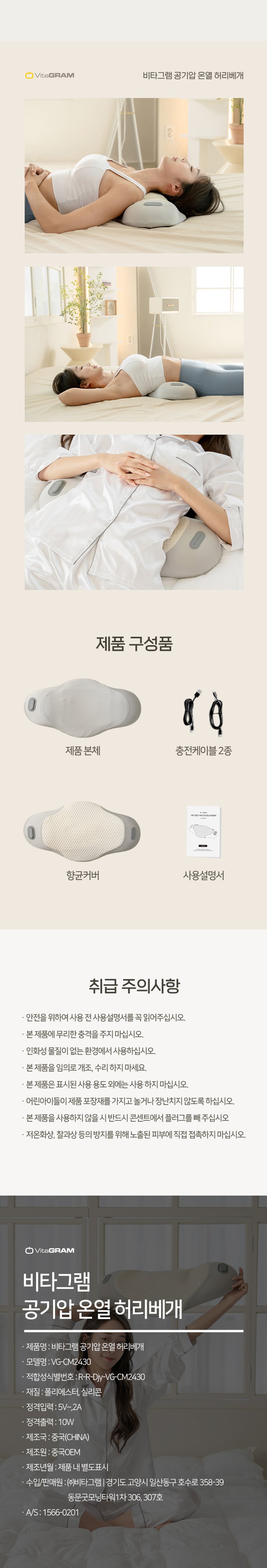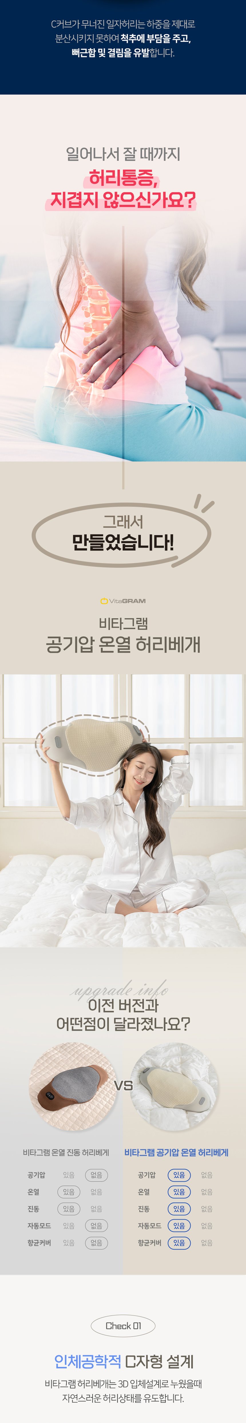 [비타그램] 공기압 온열 허리베개 VG-CM2430