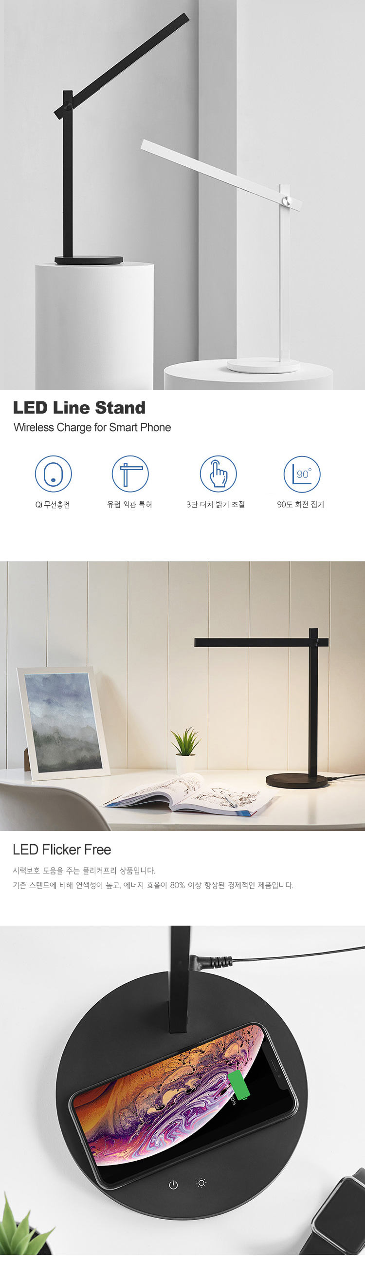 [룩스램] LED스탠드 핸드폰충전기능(색상조절,밝기조절)
