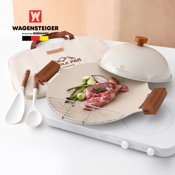 바겐슈타이거 그리들 시리즈 세트 7호_세라믹 아이보리(그리들 36cm+토트백+우드손잡이 2pcs+그리들망 32cm+아이보리 레스팅커버 28cm)
