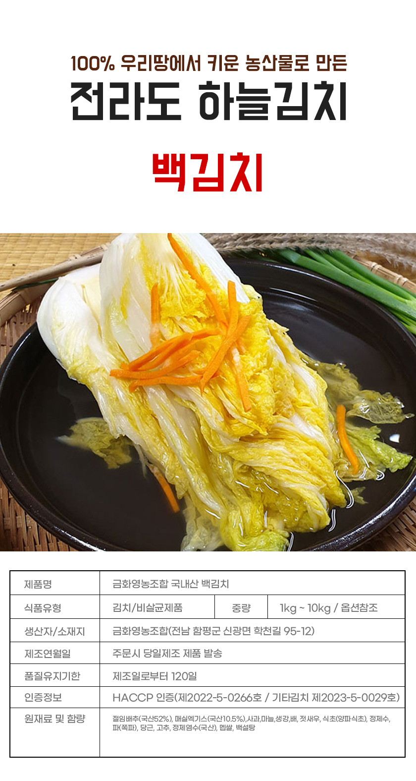 [하늘김치] 전라도 백김치 / 국내산 재료 / 중량선택