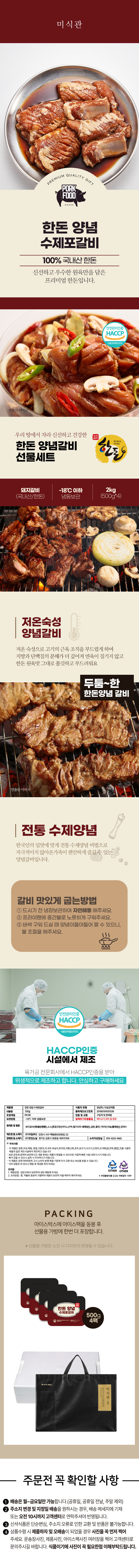 한돈 수제양념 돈포갈비 선물세트 500g*4팩