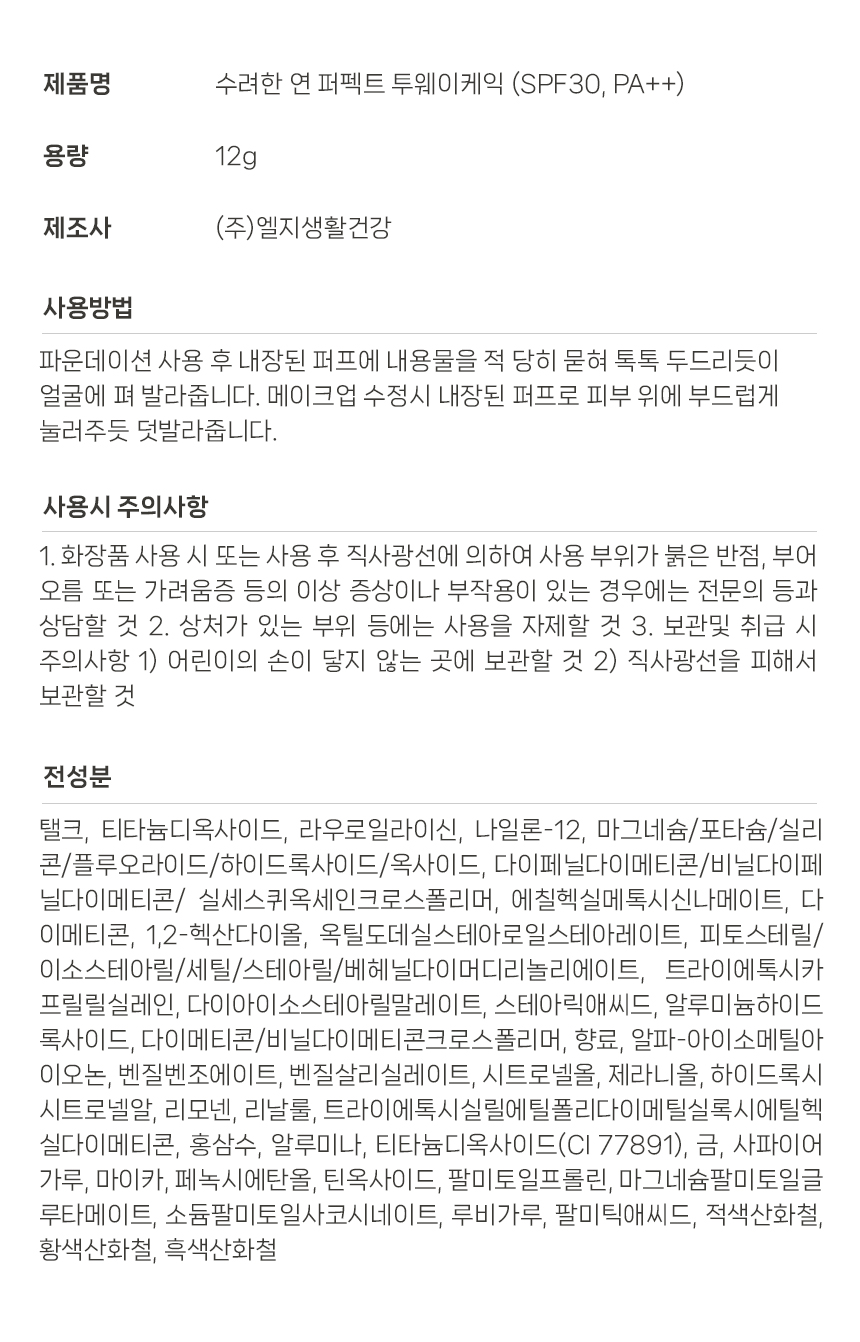 수려한 연 퍼펙트 투웨이케익 / 자외선차단기능성