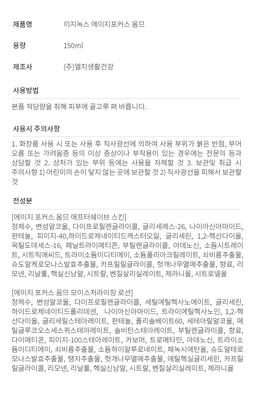 이자녹스 에이지포커스 옴므 모이스처라이징 로션 150ml 이중기능성화장품
