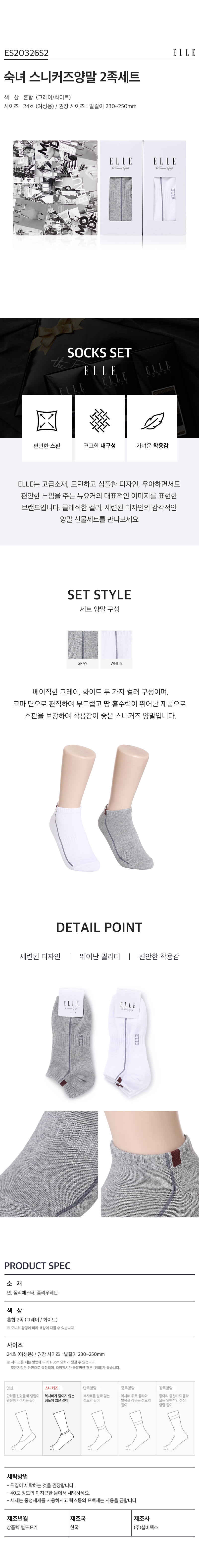 [만원의행복][엘르] 여성 스니커즈 양말 2족세트