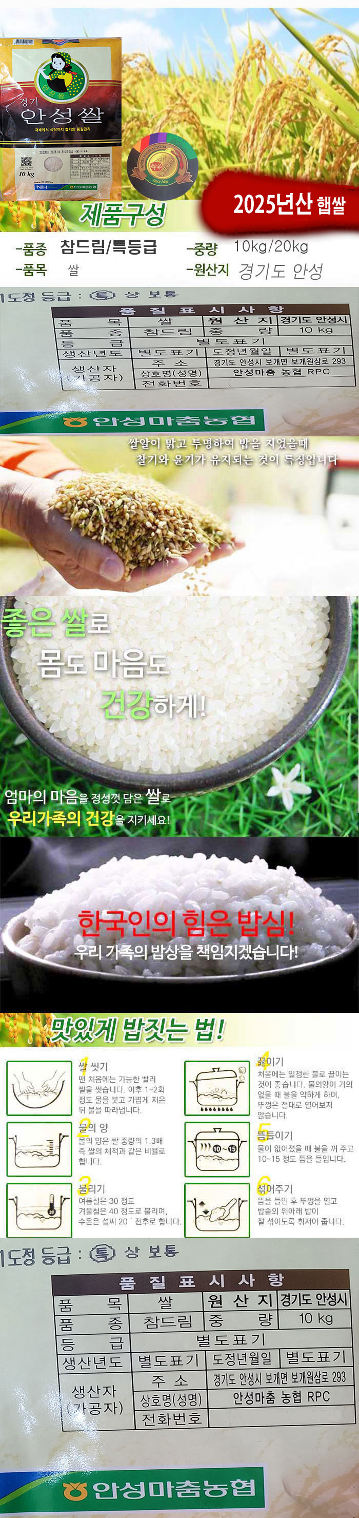 25년 햅쌀  안성농협 안성쌀(참드림품종)10kg 착한마음 아저씨쌀집