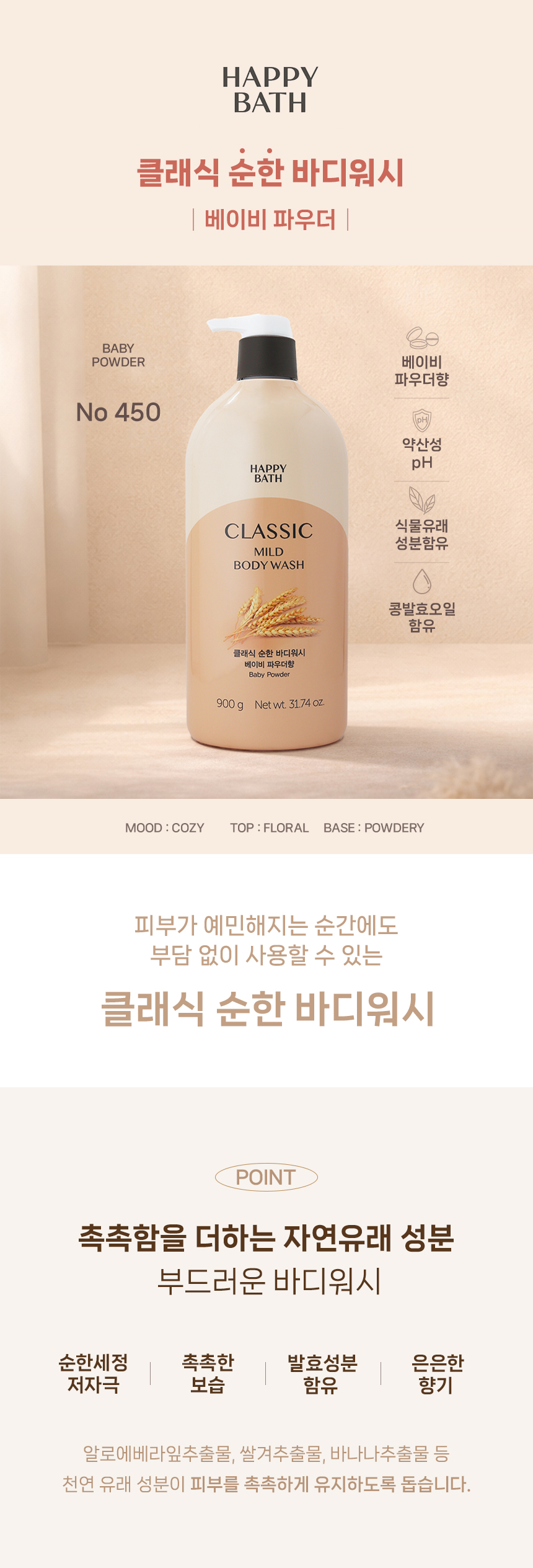 해피바스 클래식 순한 바디워시 900g 베이비파우더향