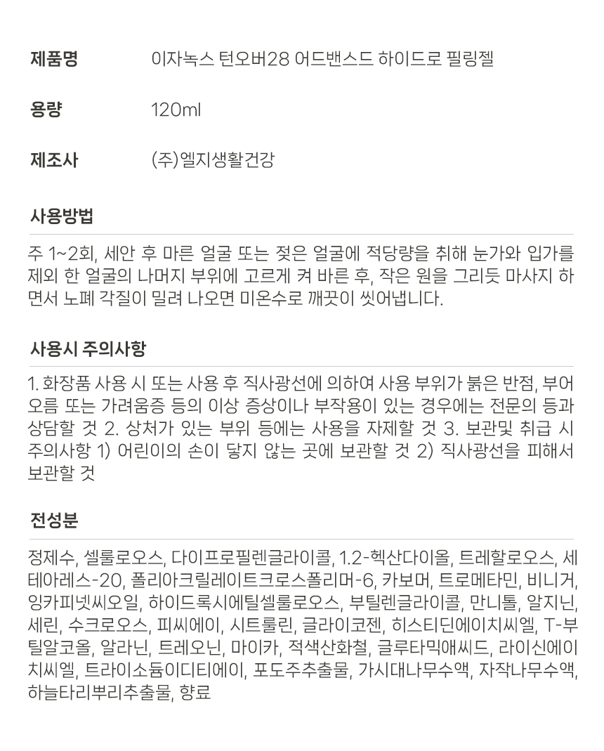 이자녹스 턴오버 28 어드밴스드 하이드로 필링젤 120ml 촉촉 진정성분 각질제거