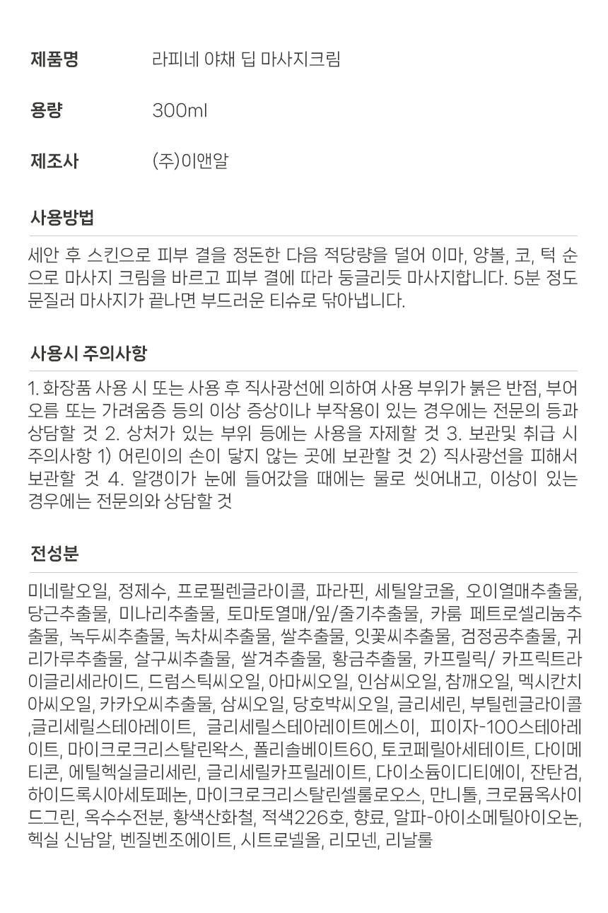 라피네 야채 딥 마사지크림 300ml