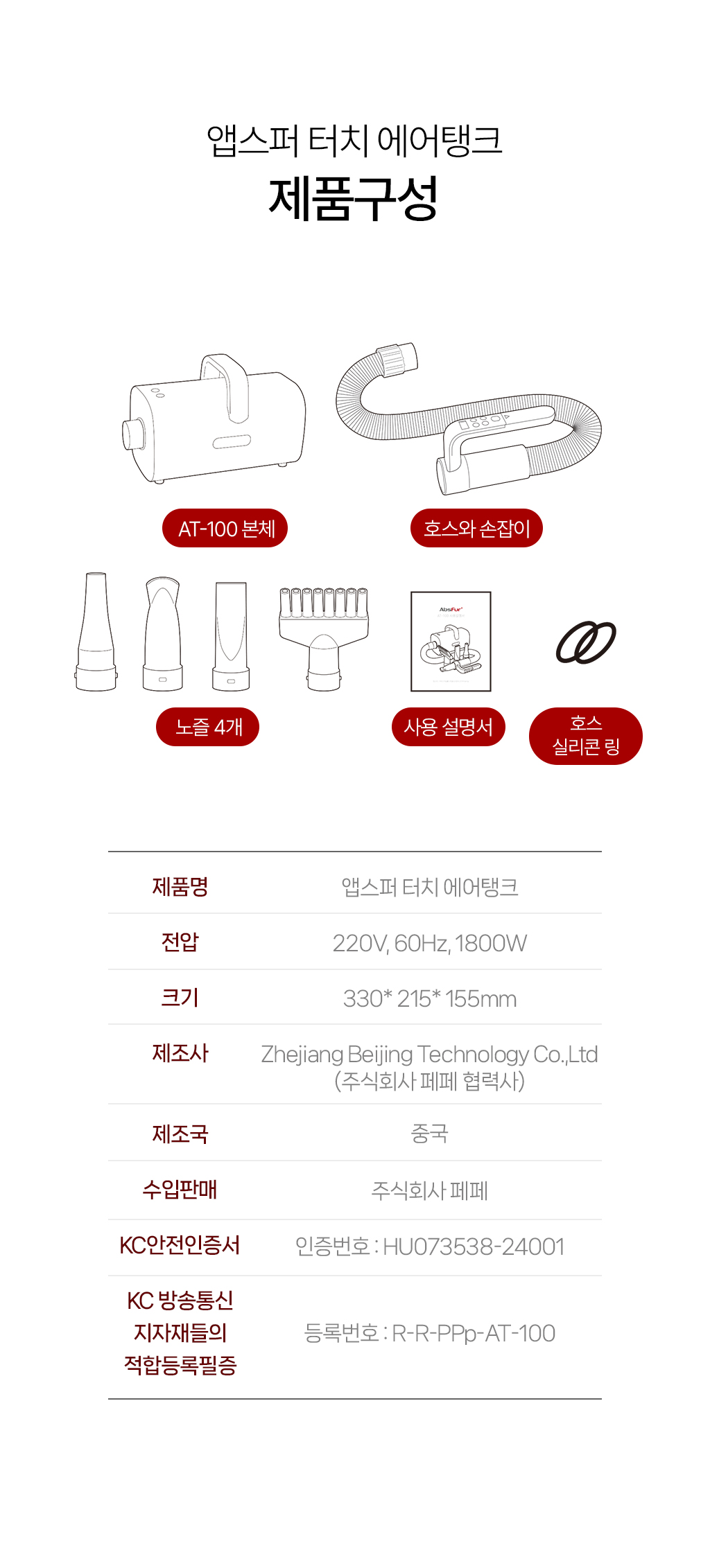 [페페] 앱스퍼 터치 에어탱크 펫드라이기 AT-100
