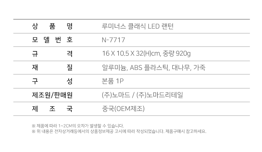 노마드 루미너스클래식LED랜턴 충전식 라이트 무드등 캠핑 용품 N-7717