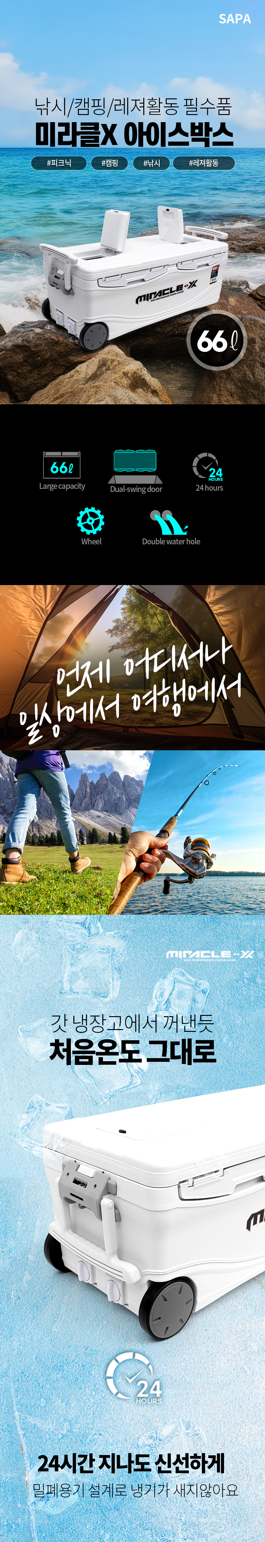 [싸파] 미라클X 아이스박스 66L SIC-066HE 아이스쿨러 캠핑용 낚시용