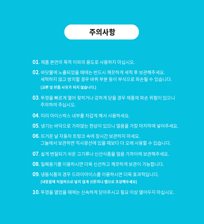 - 상품 수령 후 7일 이내에 신청하실 수 있습니다. 단, 제품이 표시·광고 내용과 다르거나, 계약과 다르게 이행된 경우는 제품 수령일부터 3개월 이내, 그 사실을 안 날 또는 알 수 있었던 날부터 30일 이내에 교환/반품이 가능합니다.
