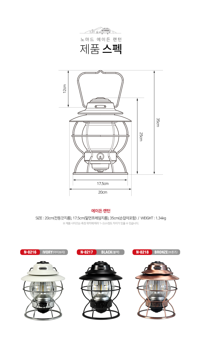 노마드 에이든 랜턴 브론즈 레트로 감성 차박 휴대용 캠핑 용품 N-8218