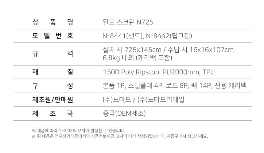 노마드 윈드스크린 N725 딥그린 바람막이 텐트 가림막 사생활보호 캠핑용품 N-8442