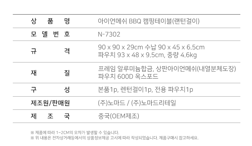 노마드 아이언 메쉬 BBQ 테이블(랜턴걸이) 접이식 휴대용 캠핑 용품 N-7302