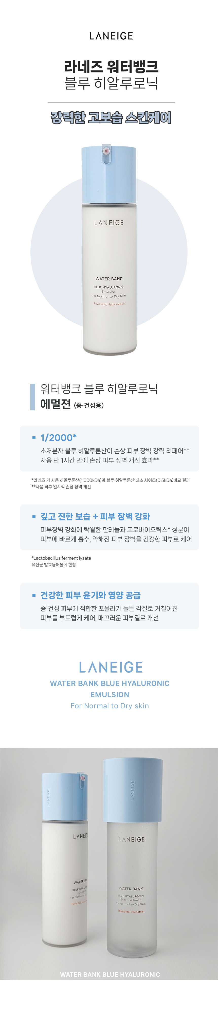 라네즈 워터뱅크 블루 히알루로닉 에멀젼 120ml 중건성용 고보습