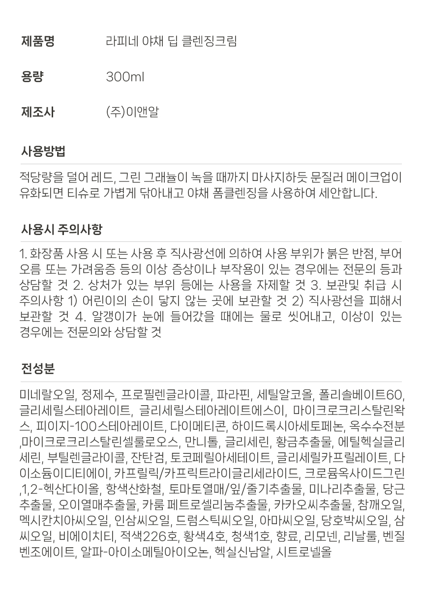 라피네 야채 딥 클렌징크림 300ml