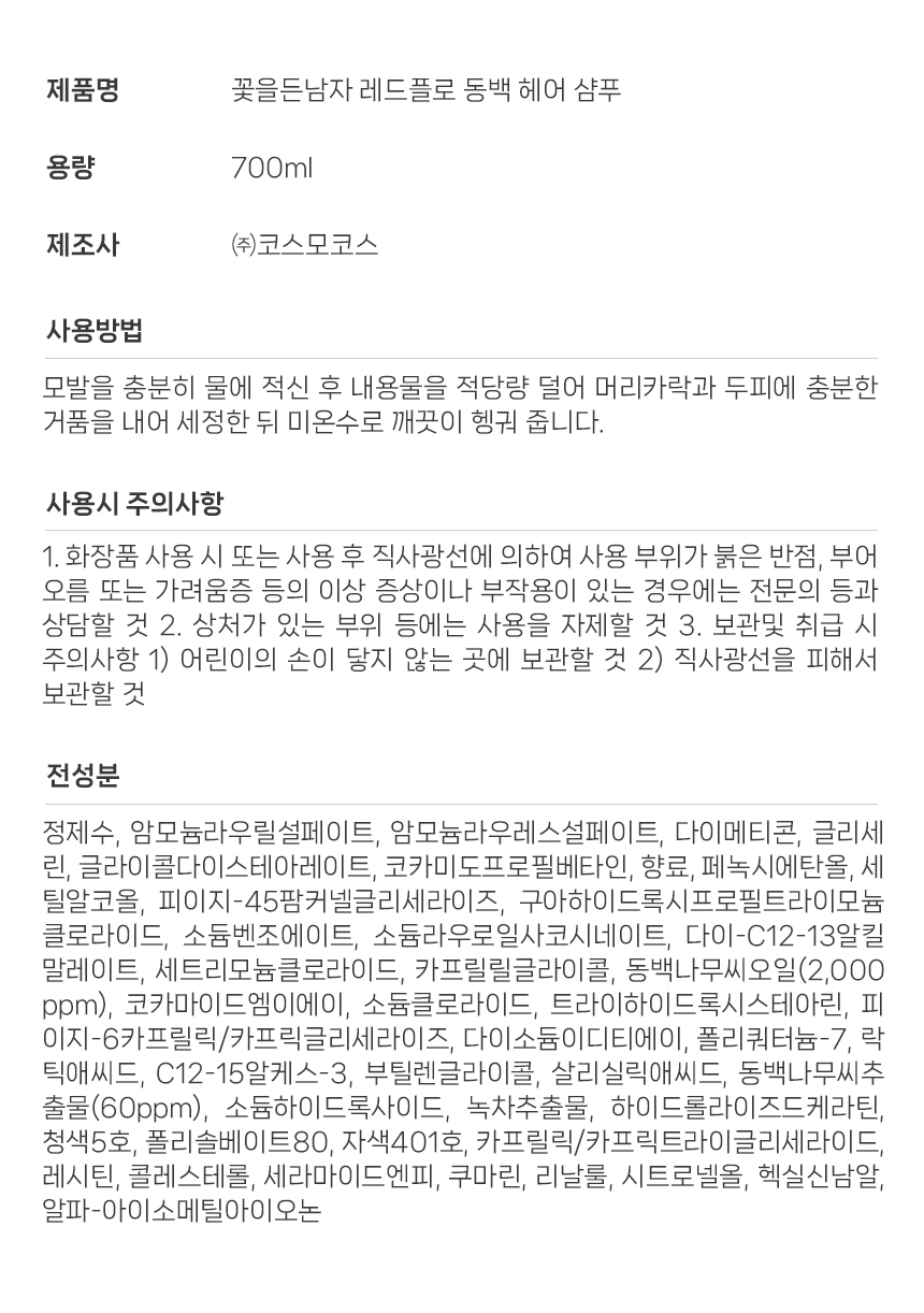 꽃을든남자 레드플로 동백 헤어 샴푸 700ml 손상모샴푸