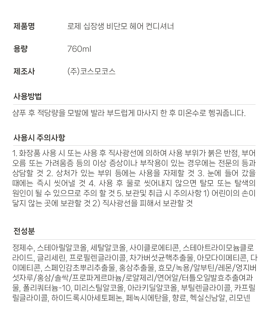 로제 십장생 비단모 헤어 컨디셔너 760ml 발효 한방 부드러운 머릿결