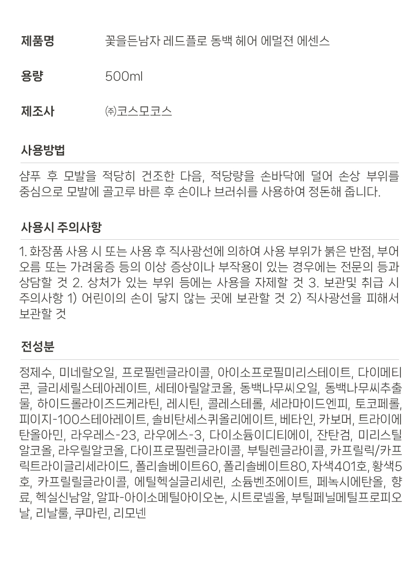 꽃을든남자 레드플로 동백 헤어 에멀젼 에센스 500ml 모발영양 보습