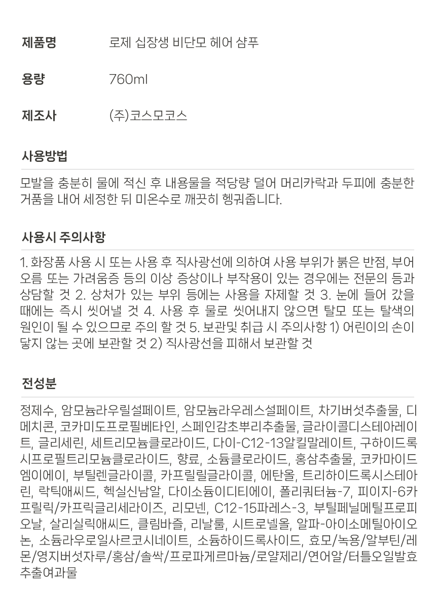 로제 십장생 비단모 헤어 샴푸 760ml 탈모 두피케어