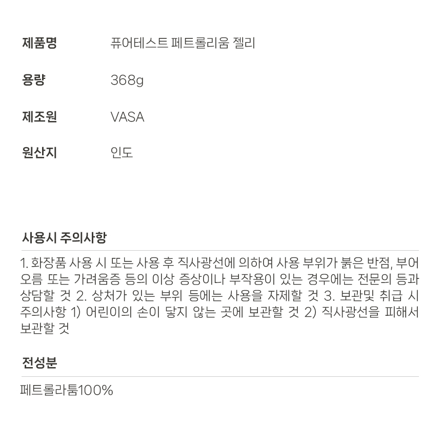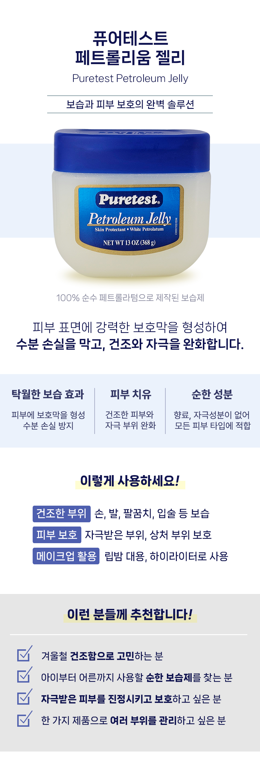 바세린 퓨어테스트 페트롤리움 젤리 368g 페트롤리엄 건조한 피부, 상처보호, 립 케어