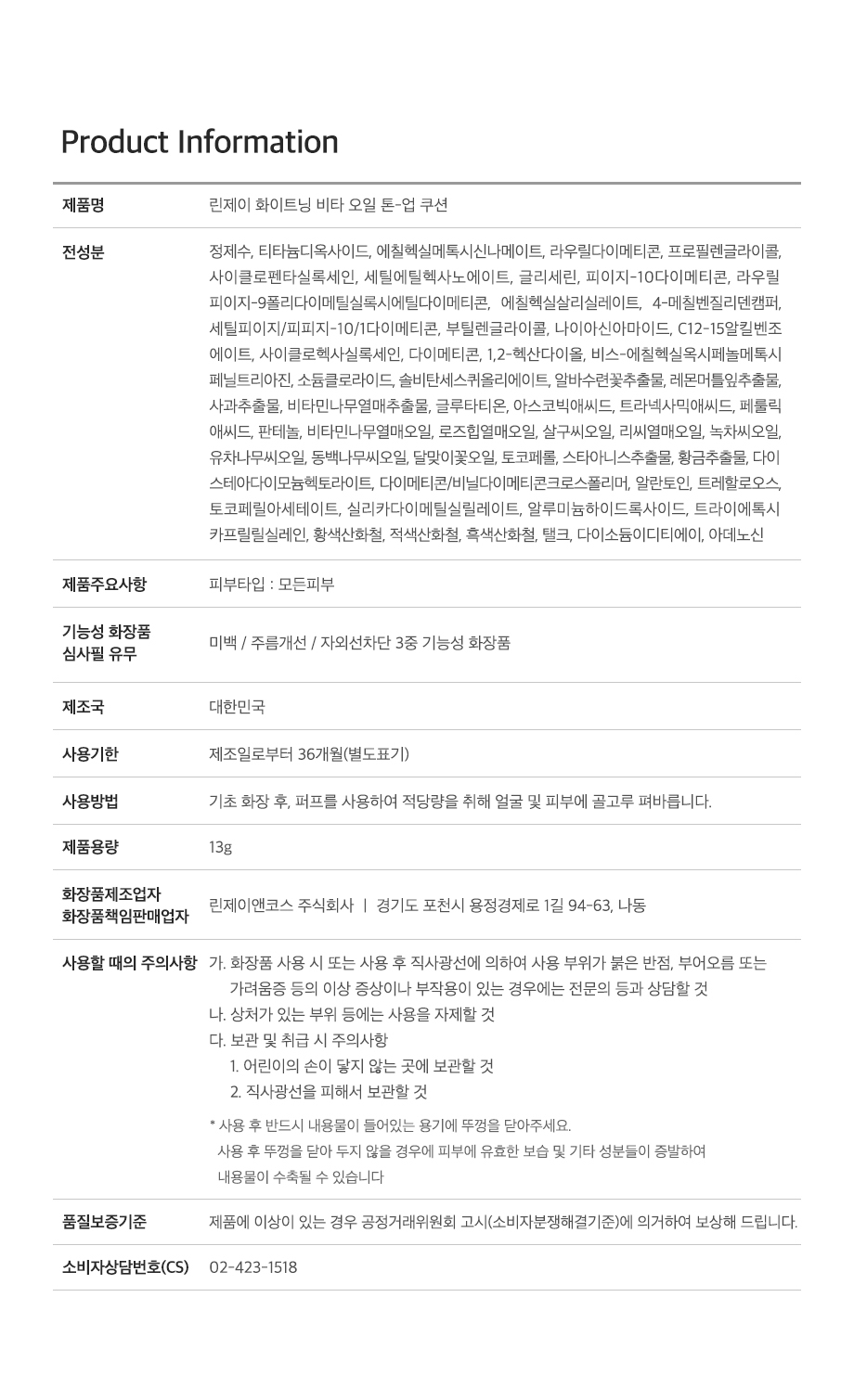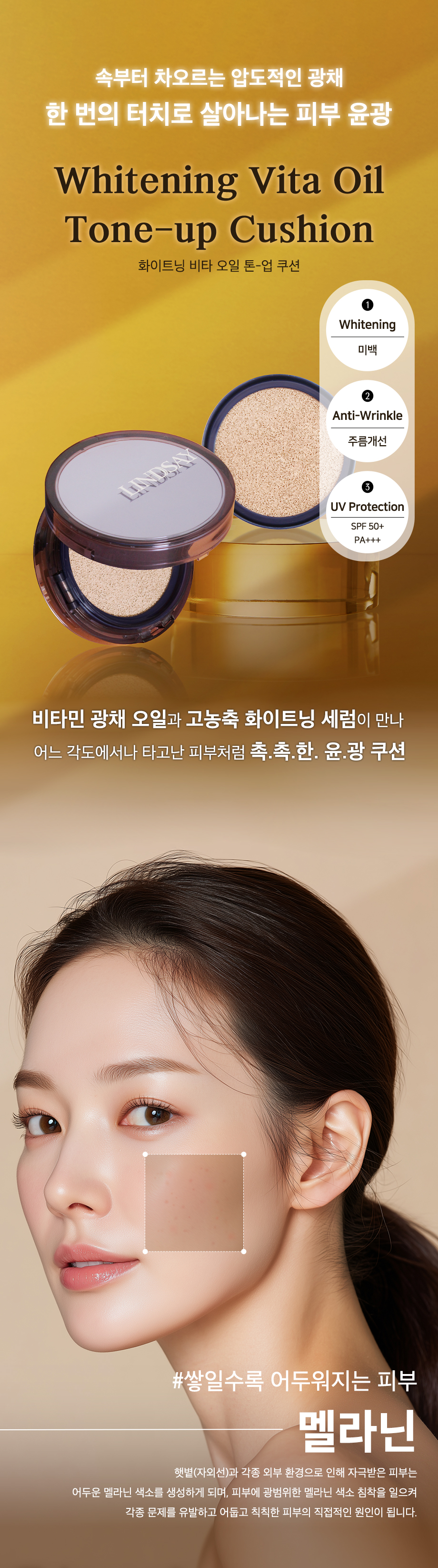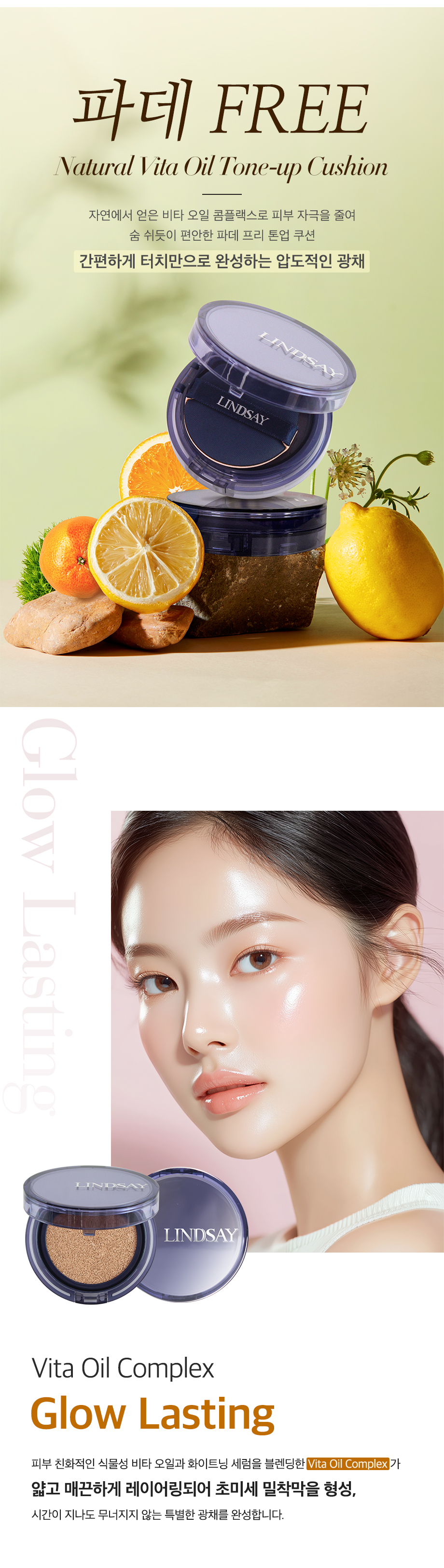 [특별할인] 린제이 촉촉한 커버력 좋은 광채 물광 화이트닝 비타 오일 톤업 쿠션