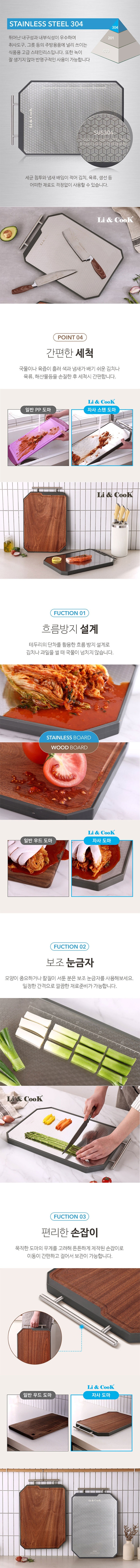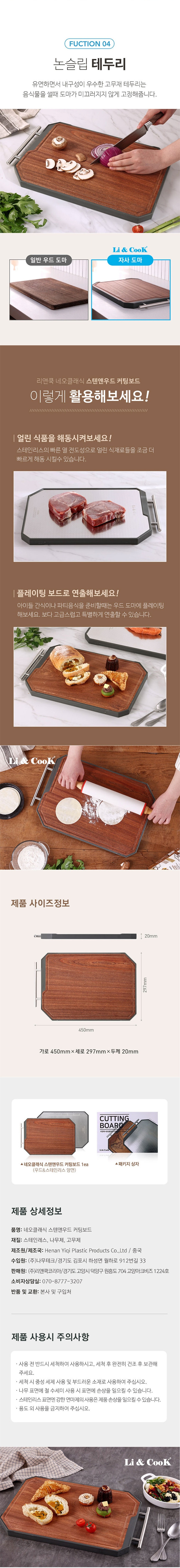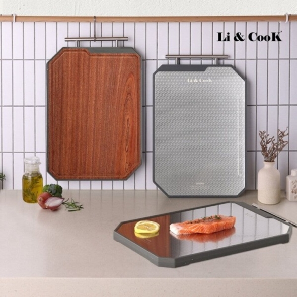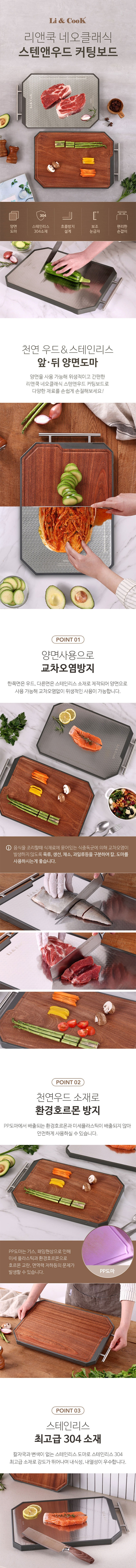 리앤쿡 네오클래식 스텐앤우드 양면 커팅보드 스테인리스 천연우드 소재