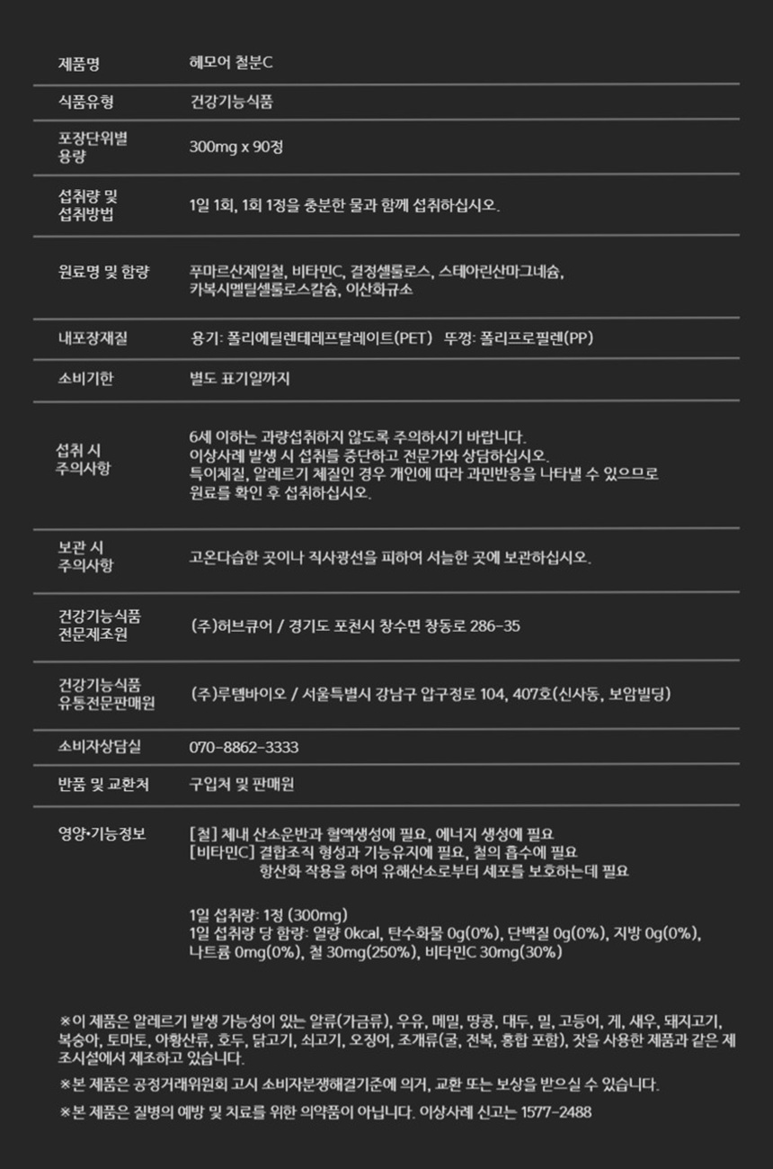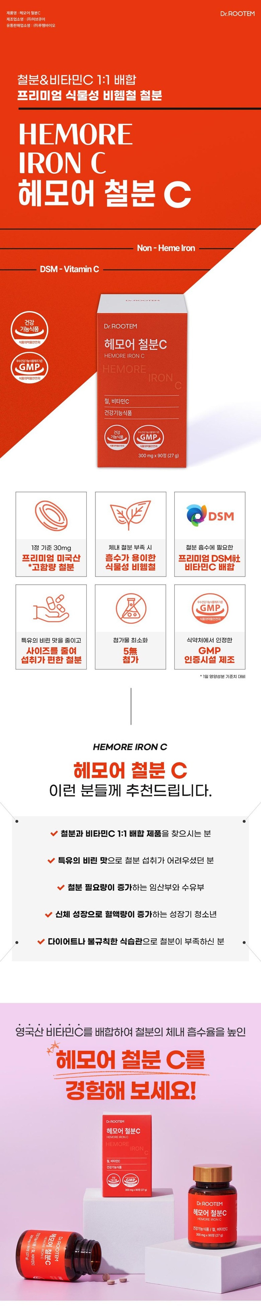 닥터루템 고함량 비헴철 철분 헤모어 90정, 2박스