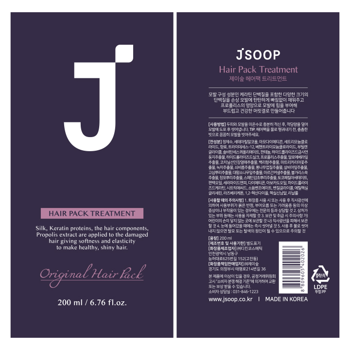 [제이숲] 오리지널 헤어팩 트리트먼트 200ml