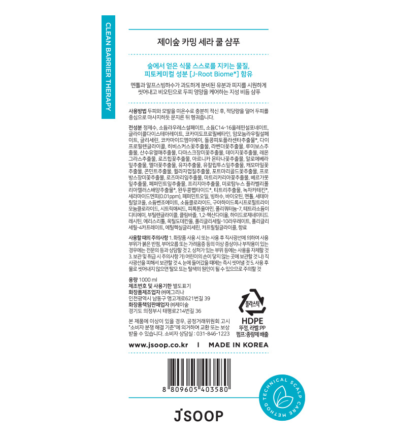 [제이숲] 카밍 세라 쿨 샴푸 1000ml