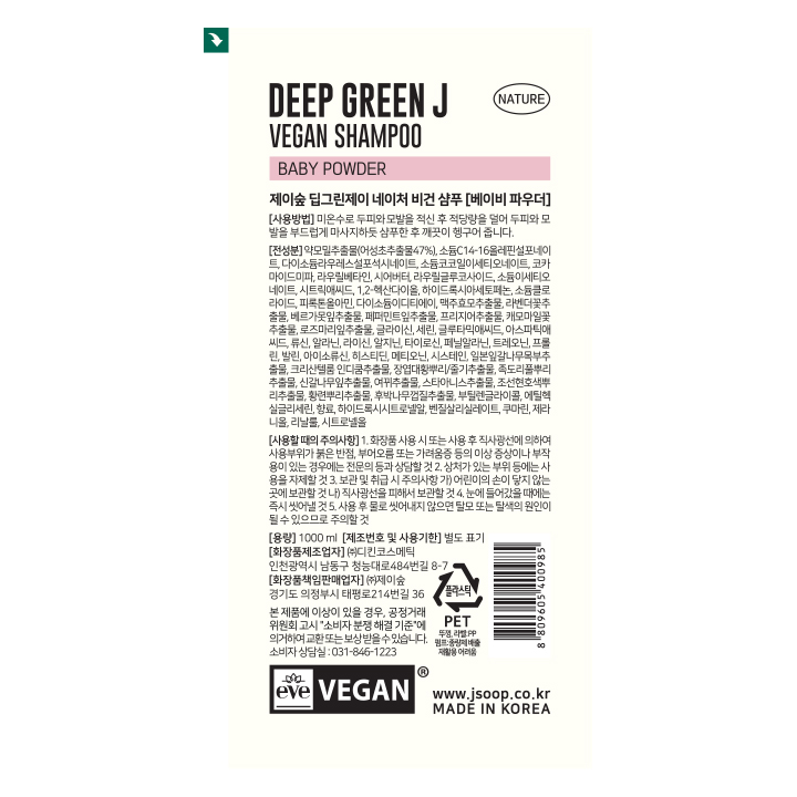 [제이숲] 딥그린제이 네이처 샴푸 1000ml - 베이비파우더