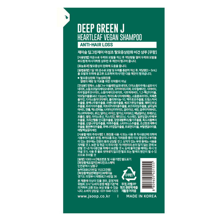 [제이숲] 딥그린제이 어성초 샴푸 1000ml - 무향