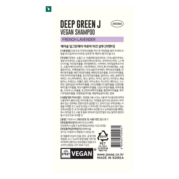 [제이숲] 딥그린제이 아로마 샴푸 1000ml - 프렌치 라벤더
