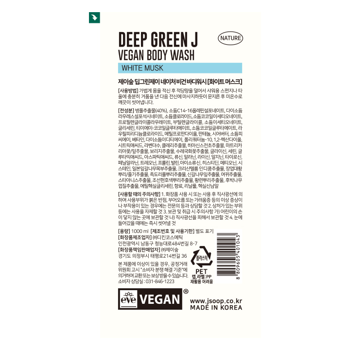 [제이숲] 딥그린제이 네이처 바디워시 1000ml - 화이트머스크