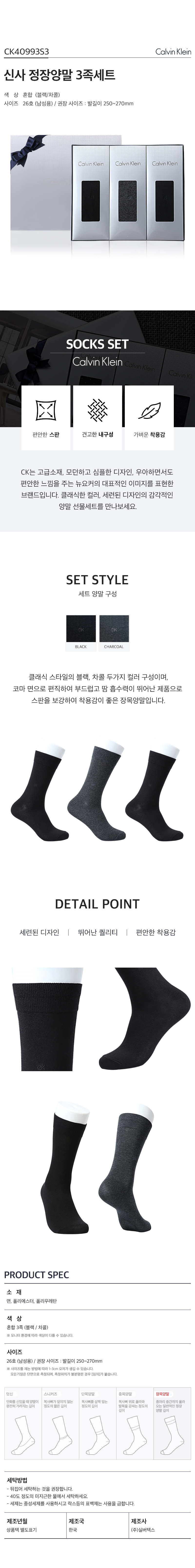 [캘빈클라인] 신사정장 양말 3족 세트 CK40993-3