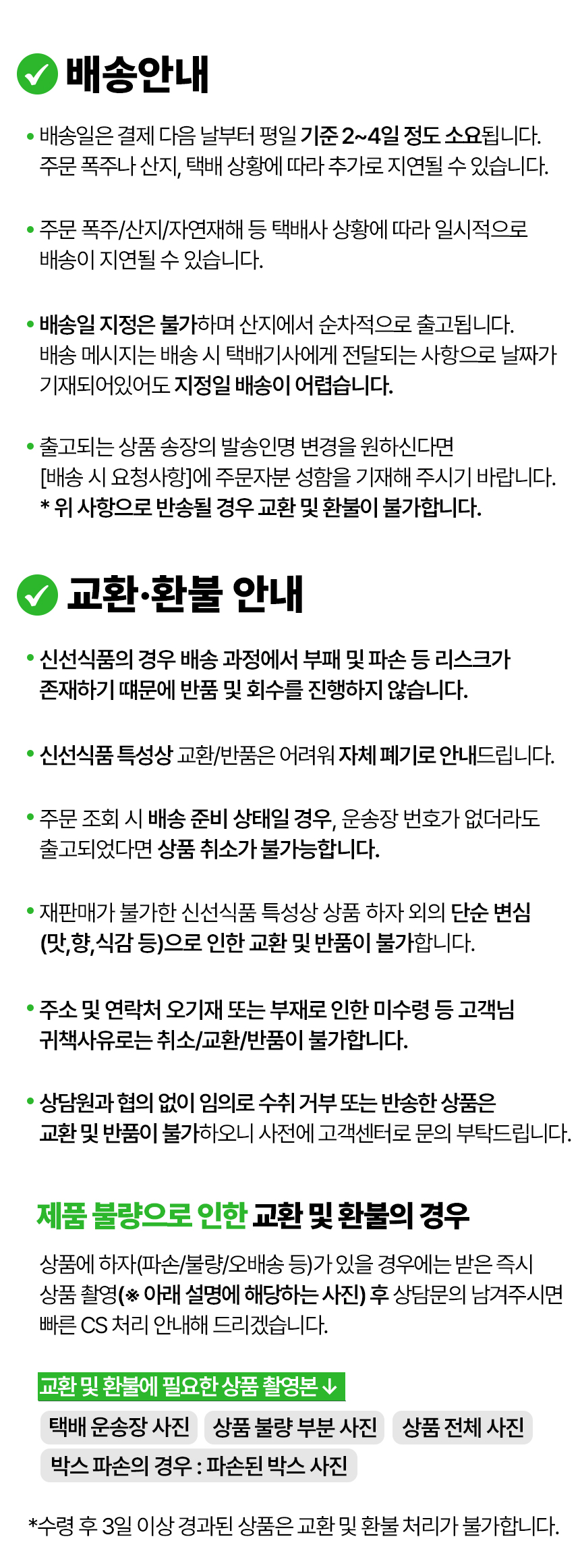 구매/배송 ※ 상품정보에 별도 기재된 경우, 아래의 내용보다 우선하여 적용됩니다.