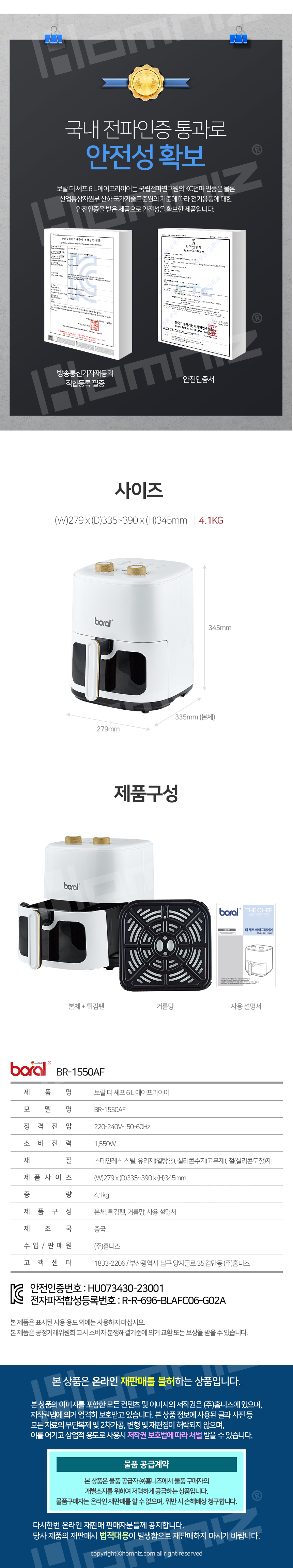 [보랄] 더 셰프 6L 에어프라이어 BR-1550AF