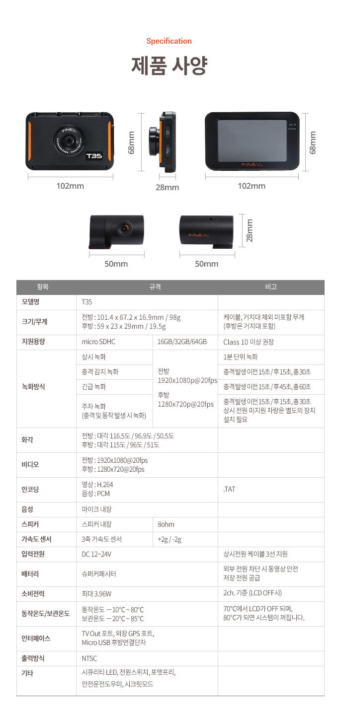 파인뷰 T35 16GB 2채널 블랙박스/시크릿모드