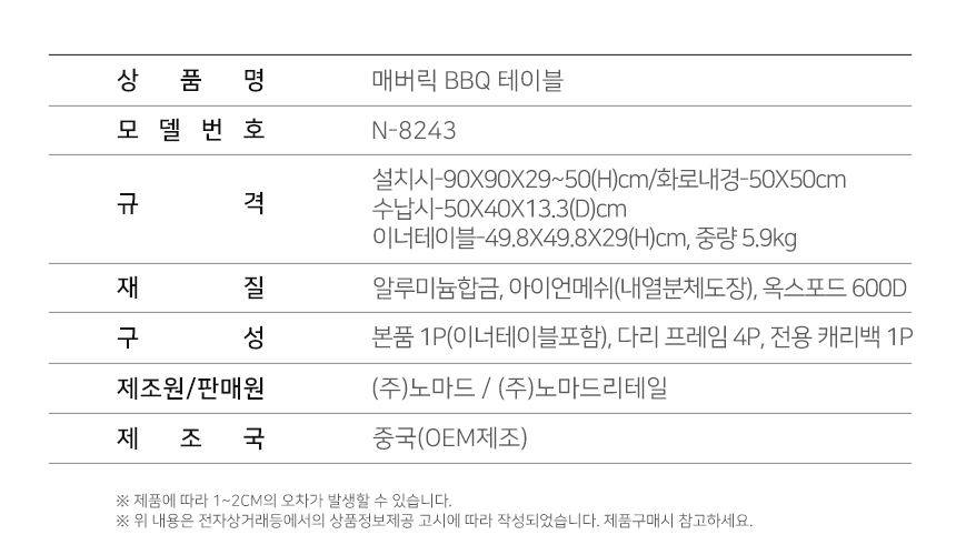 노마드 매버릭 BBQ 테이블 접이식 휴대용 캠핑 용품 N-8243