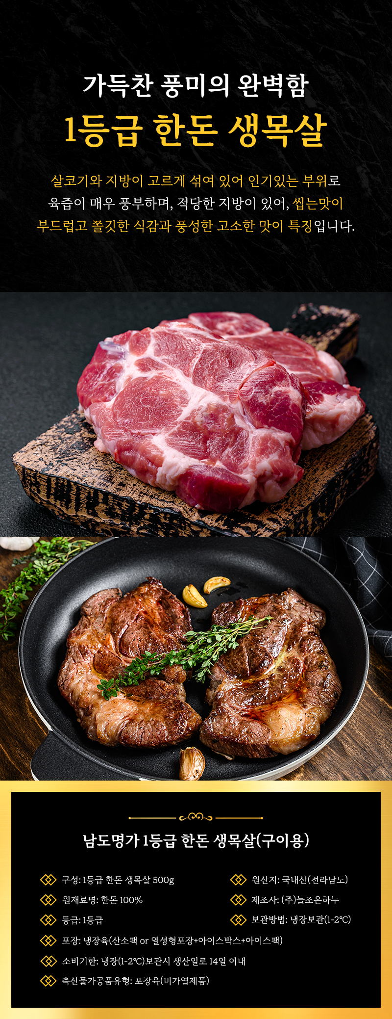 [남도명가] 1등급 한돈 생목살 500g/1kg (구이용/보쌈용)